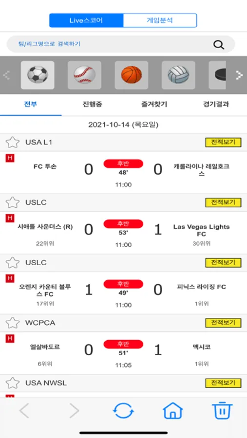 LIVE스코어 ( livescore )는 축구, 야구, 농구 등 전 종목의 경기스코어 정보를 확인 할 수 있는 국내 유일의 '스포츠 통합스코어 서비스' 입니다.