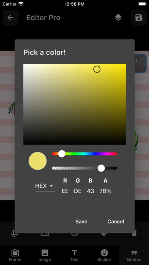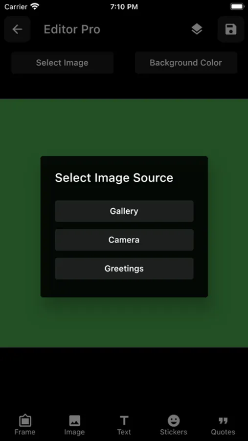 - Designer Pro, create your card from scratch, add background, add frame, image, text, quotes, and various filters