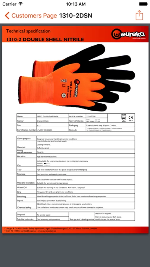 And once you have found the correct glove you can find all technical information about the Eureka gloves.