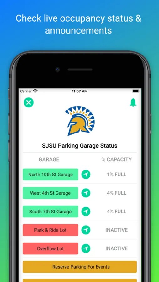 Check LIVE occupancy status of parking garages. Plan your day ahead of time.