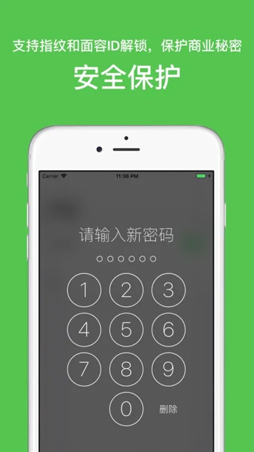 支持密码解锁,指纹解锁和面容ID解锁,保护商业秘密