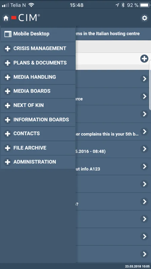 CIM is a secure and flexible online tool that enables you to build, maintain and activate your organization's Incident and crisis management plans. CIM helps you to response quickly and effectively to any incident which threatens your organization's people, assets or reputation.