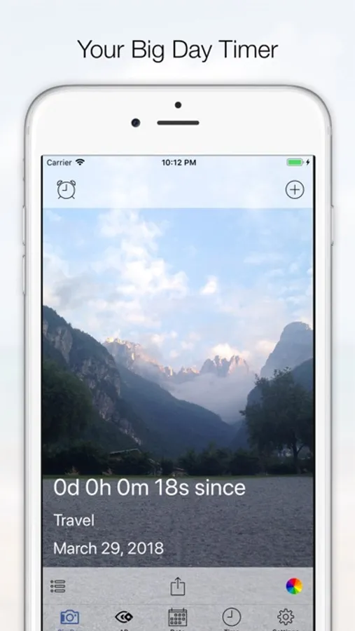 It tells you the remaining days, hours, minutes and seconds until or starts counting the days, hours, minutes and seconds after the event with your own photos.