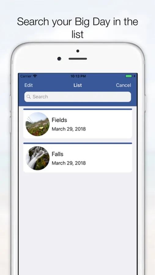- Swipe left in the list to edit or delete big day.