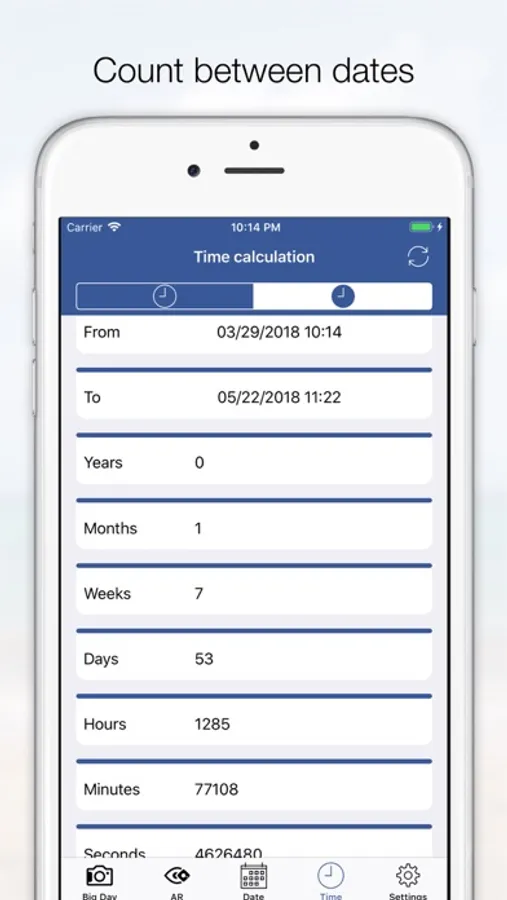 - Add a big day to get the remaining days, hours, minutes and seconds until or starts counting the days, hours, minutes and seconds after the event. The event will be automatically sent to your Apple Watch app.