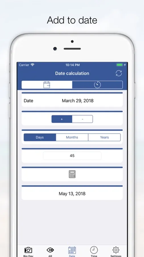 - Add or subtract years, months, days, hours and minutes to a date.