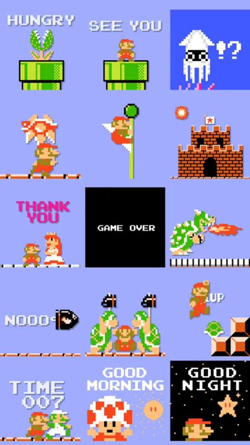 Power up your messages with stickers of great Mario memories, both familiar and new!
