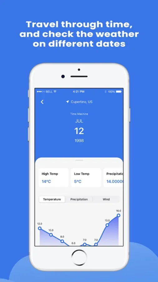 Also if you're interested, in how was the weather in 1970 or any other date in the past, or you want to plan an event in the future and you wonder how would the weather be, you can do it all with the Cloudy through the Time Machine feature.