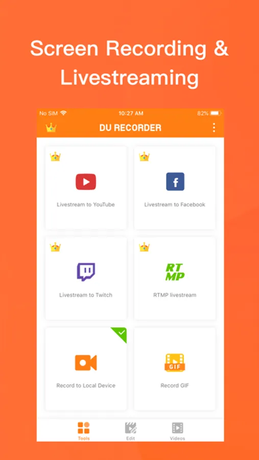 Add the screen recording feature to your control center, tap the Record button, and choose DU Recorder to record your screen and save videos to your device. DU Recorder provides stable and fluid screen recording. With this screen recording feature, you can easily record popular mobile game videos, video calls with family and friends, and even popular live shows!