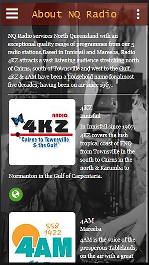 Based in Innisfail and Mareeba, Radio 4KZ attracts a vast listening audience stretching north of Cairns, south of Townsville and west to the Gulf. 4KZ & 4AM have been a household name for over five decades, having been on air since 1967.