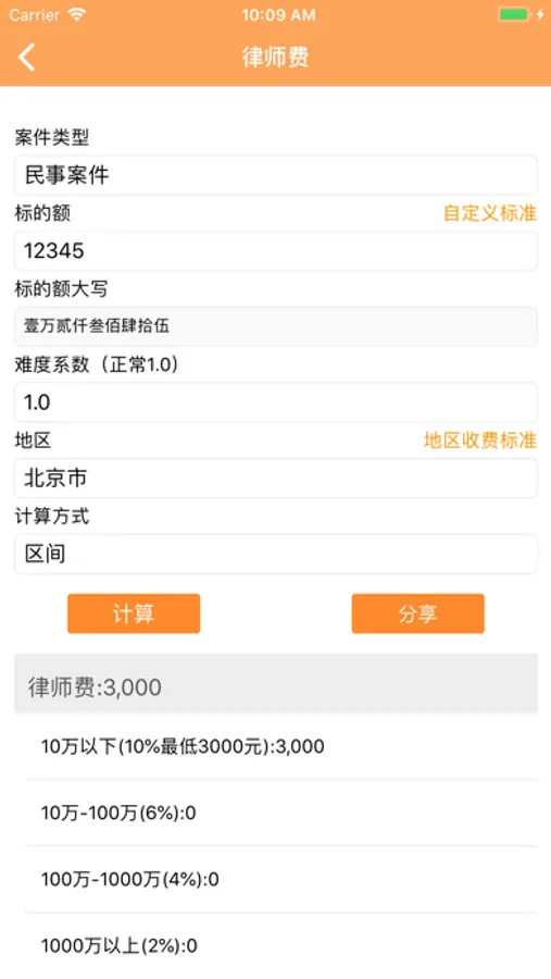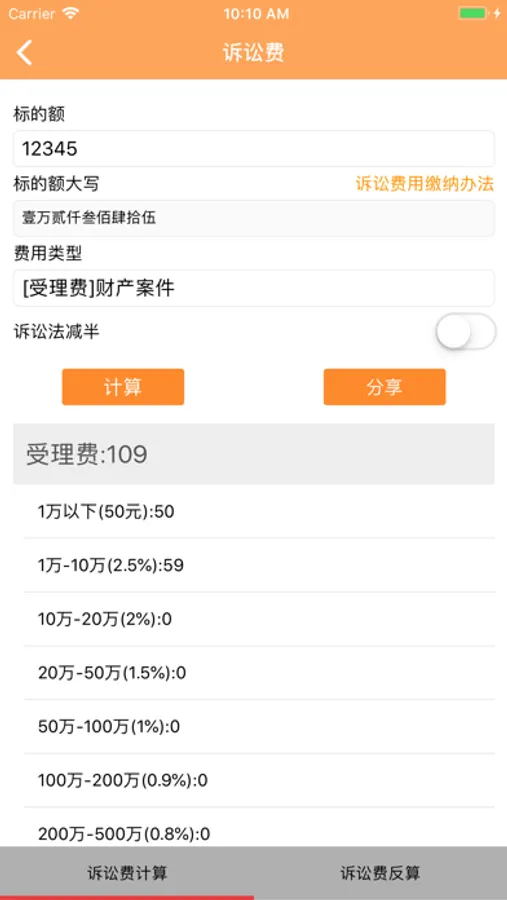 3、诉讼费算法,支持诉讼费计算、反算功能。