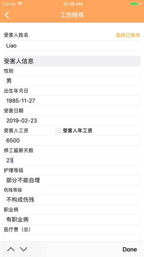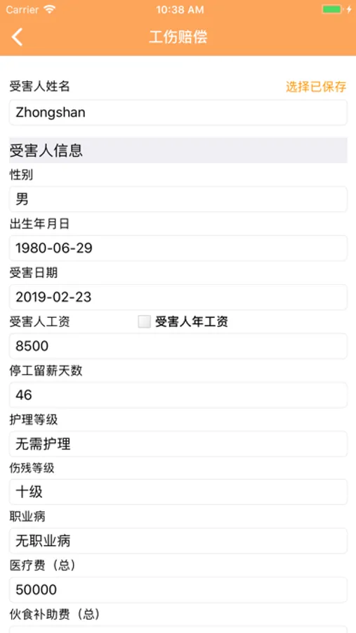 10、工伤赔偿计算,支持全国各地,并在线更新各种统计数据。