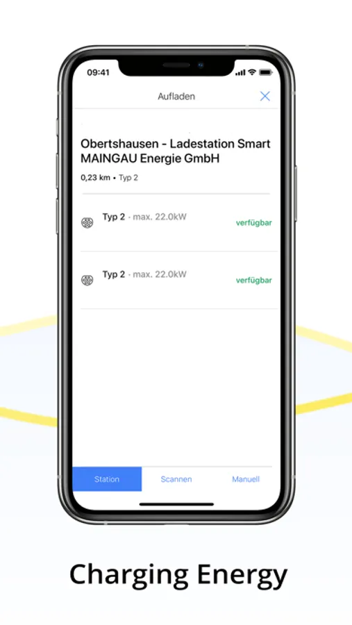 Click the charge button and a charging station near by will appear. Click on your charging point, scan the QR code or enter the charging station ID, connect the cable and start your charging process.