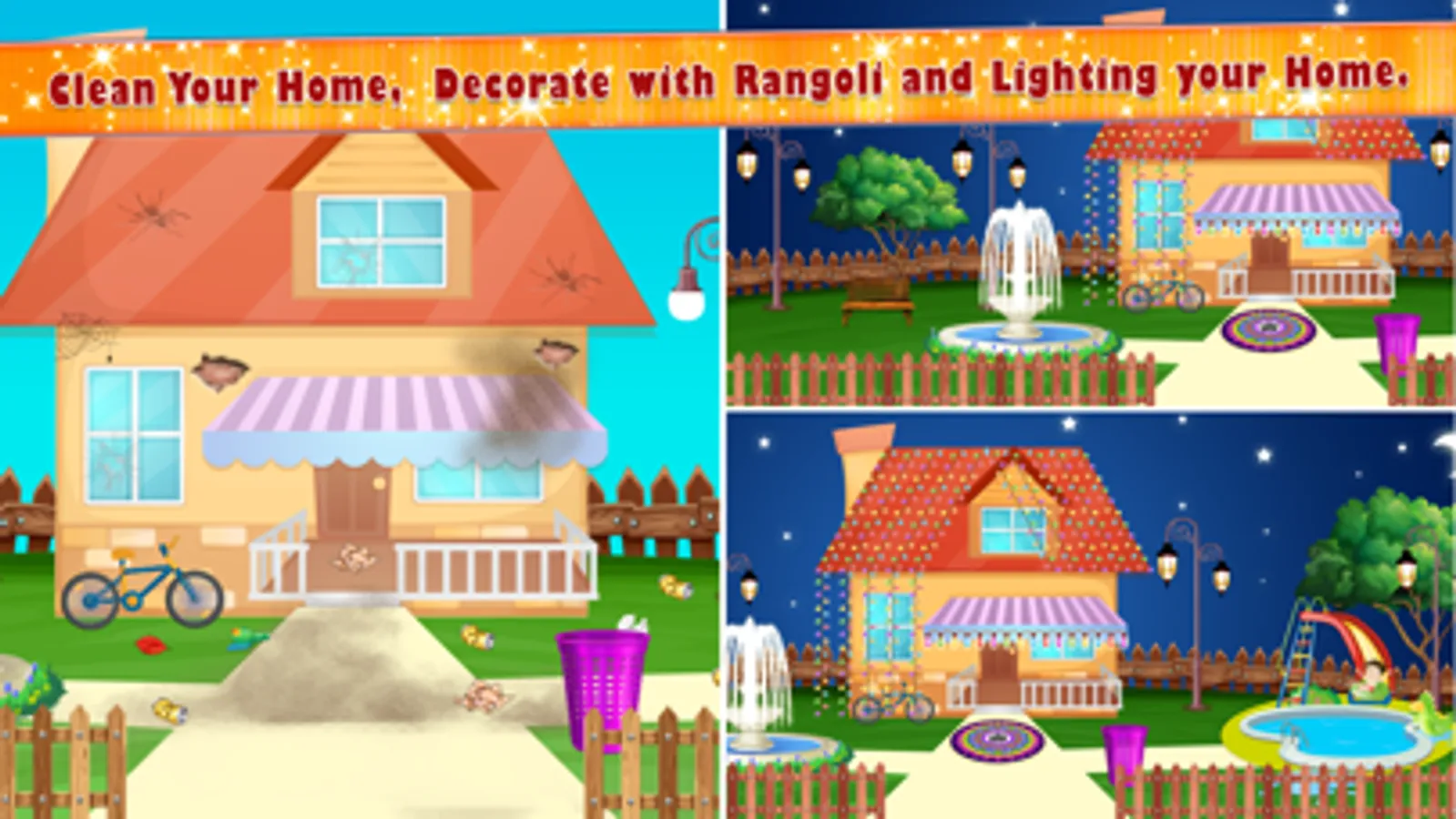 In Diwali, preparation start before 1 months. Women start cleaning their house starting from kitchen or room or garden. After cleaning the decoration take place. Some home change the color, some add stickers, some change the floor.