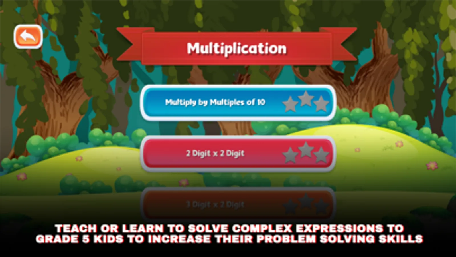 Grade 5 Math provides the most comprehensive learning and fun game for children 8 to 12 years old.This game keep children engaged, and motivate them to learn new skills. Kid friendly rich graphics, animations, voices, and intuitive touch, click, drag and drop style, easy to use questions allow children to work independently.
