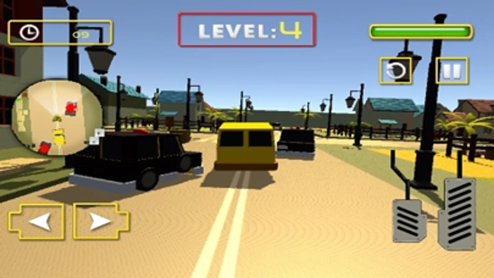 Drive in city with traffic and escape police car to reach safe point.