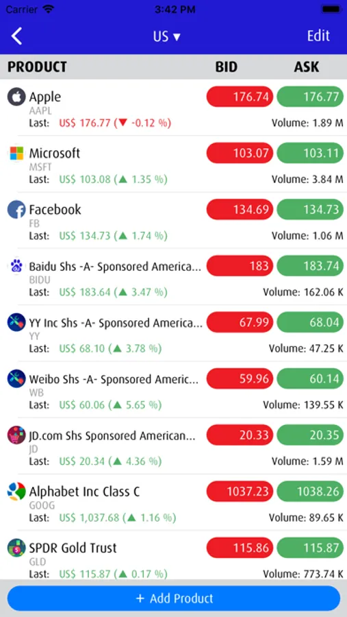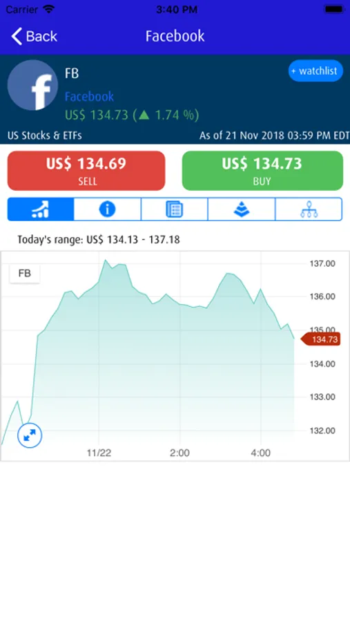 User can search all stocks, ETFs and warrants (mainly Hang Seng Index Warrants) that are listed in Singapore Stock Exchange. In the product screen, user can view details about the product, including real-time updated price information.