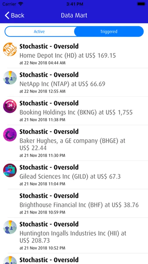 User can create a data mart alert to notify him when one of our custom data mart events happens. Examples include Volume Breakout & Major Price Breakout.