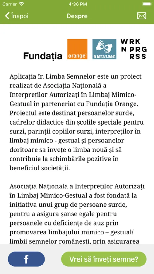 Aplicația in Limba Semnelor este un proiect realizat de Asociația Națională a Interpreților Autorizați in Limbaj Mimico-Gestual în parteneriat cu Fundația Orange. Proiectul este destinat persoanelor surde, cadrelor didactice din școlile speciale pentru surzi, parintii copiilor surzi, interpreților in limbaj mimico - gestual și persoanelor doritoare să învețe o limba noua și să contribuie la schimbările pozitive in beneficiul societății.