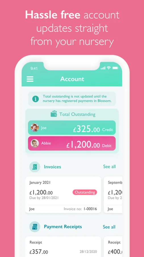 Paying nursery fees has never been easier with our latest update! Pay your nursery fees directly from the Parent App and view your invoice details and payment receipts all in one place. It’s as easy as 1..2..3!