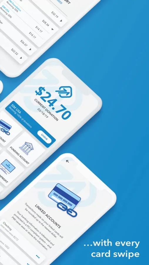 2. Link your chosen debit, credit card, and/or bank accounts, and choose the nonprofit you'd like to support.