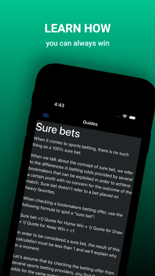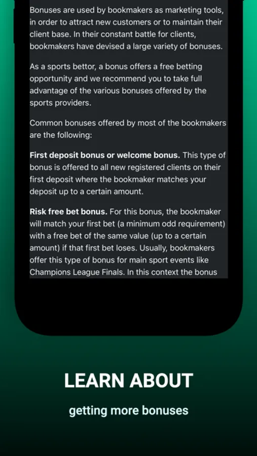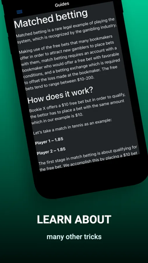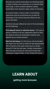 In addition to tips, this application also contains some guides for beginners in e-sports: money management, arbitrage betting, bonus management.