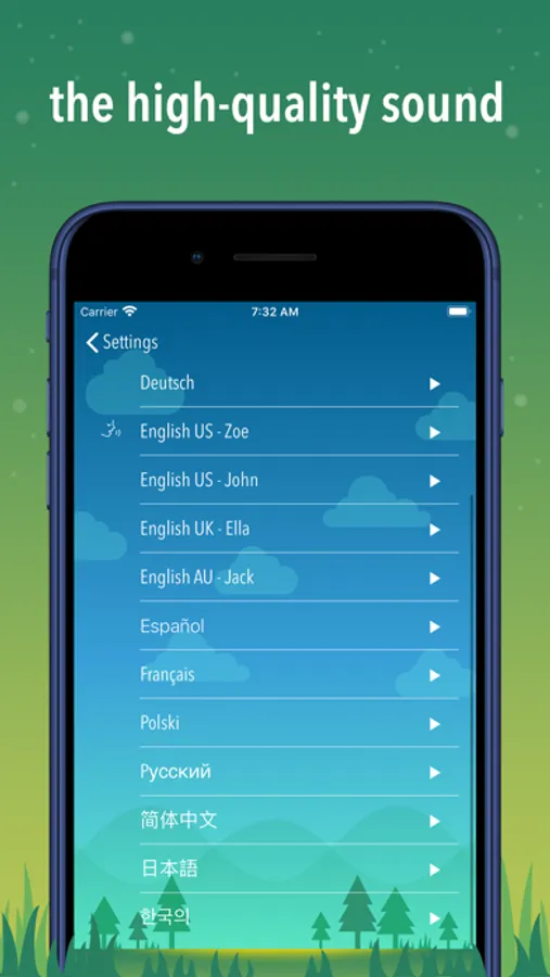 Fully supported languages: English US (male or female), English UK (female), English AU (male), French, German, Russian, Japanese, Korean, Simplified Chinese, Polish and Spanish.