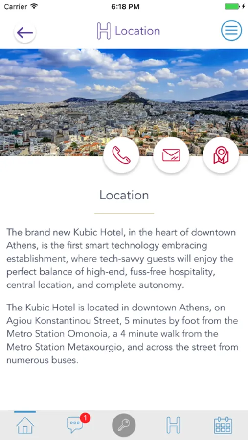 The first smart hotel in Greece, Kubic Athens Hotel, proudly presents its innovative application “Kubic”, which will take your stay to the next level. The app can be used by guests of the hotel during their stay.