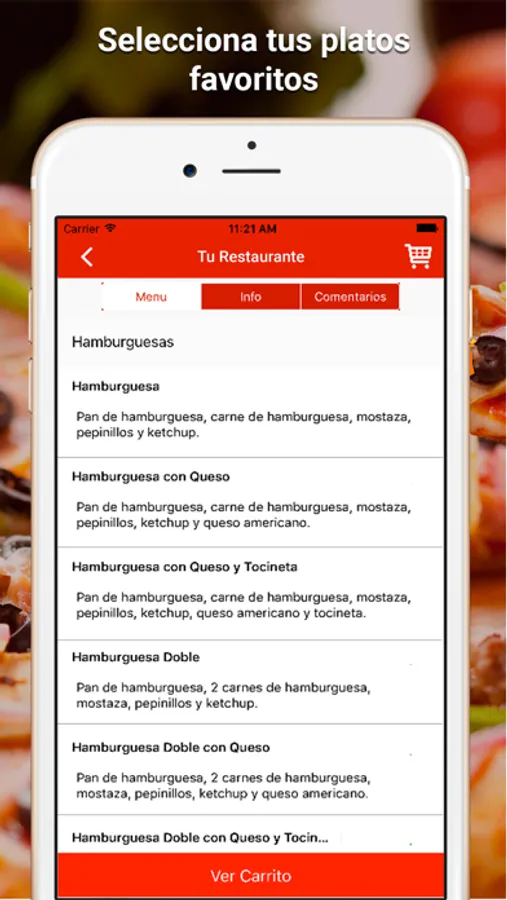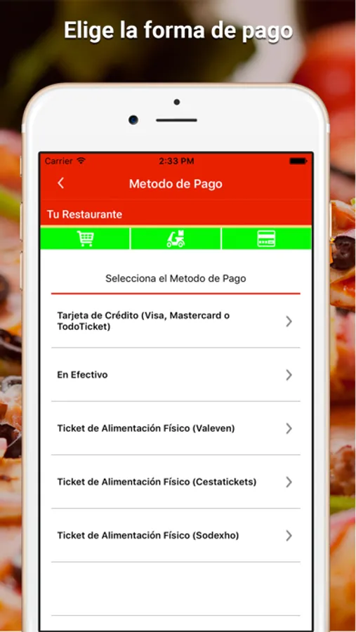 2. Elige tu restaurante favorito y pide la comida a través de tu SmartPhone.