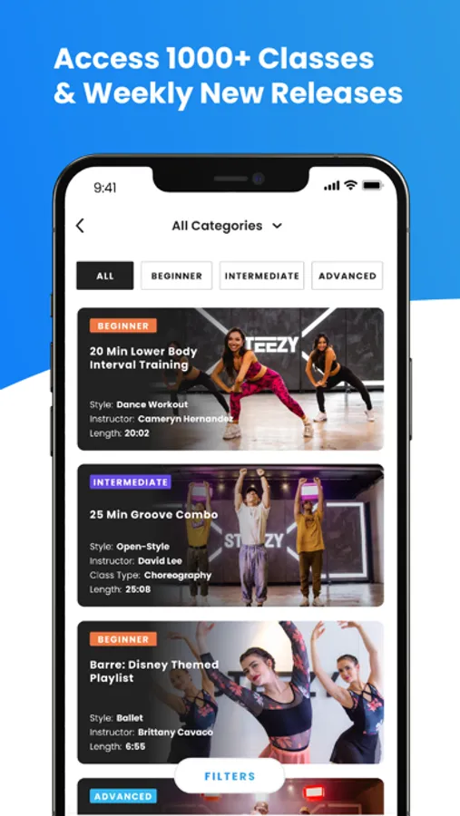 With 1000+ classes, and more being added every week, there's always more styles and fun routines to explore. Classes range from complete beginner to expert, so jump in wherever you’re comfortable and you’ll be grooving in no time.