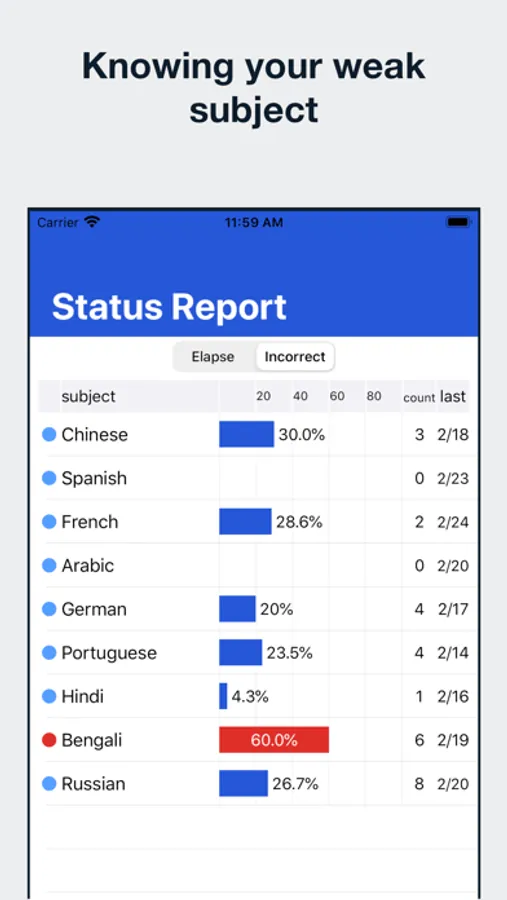 - View learning status for all subjects(As a pacemaker of your learning, checking weak points)