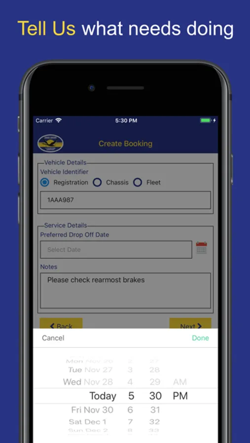 From the convenience of your phone, you can provide your preferred drop off date, attach some pictures and describe your reason for visiting us.
