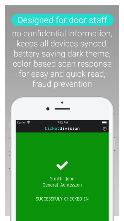 - Designed for door staff: no confidential information, no account management tools or settings, you can leave your staff logged in to scan tickets with total peace of mind