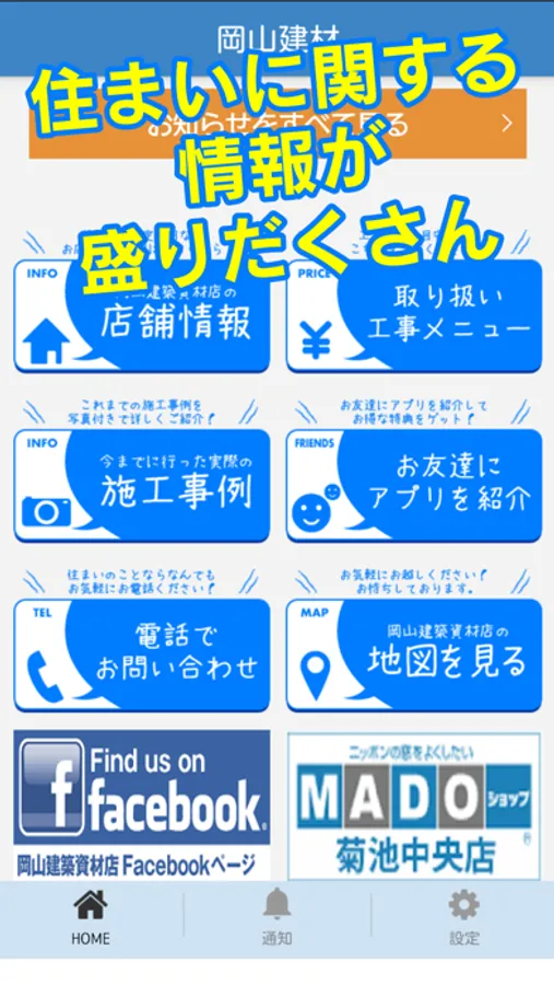 菊池市でリフォームをおこなっている岡山建築資材店【MADOショップ菊池中央店】の公式アプリです。