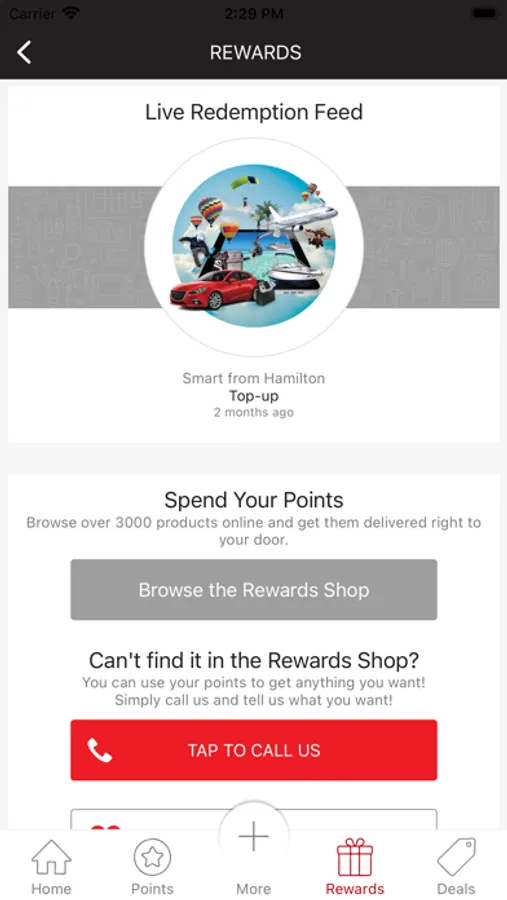 - Interact with the live redemption feed to see which rewards other member’s are currently redeeming with their points.