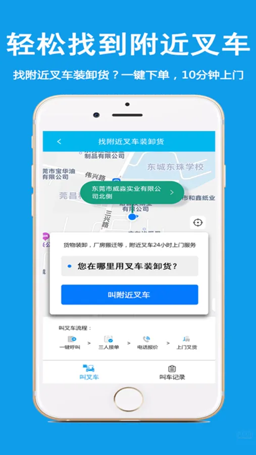 一键发单,附近叉车出租师傅极速响应,电话报价,10分钟准时上门为您提供叉车装卸货服务。平台0费用,找叉车更快速,更便捷。