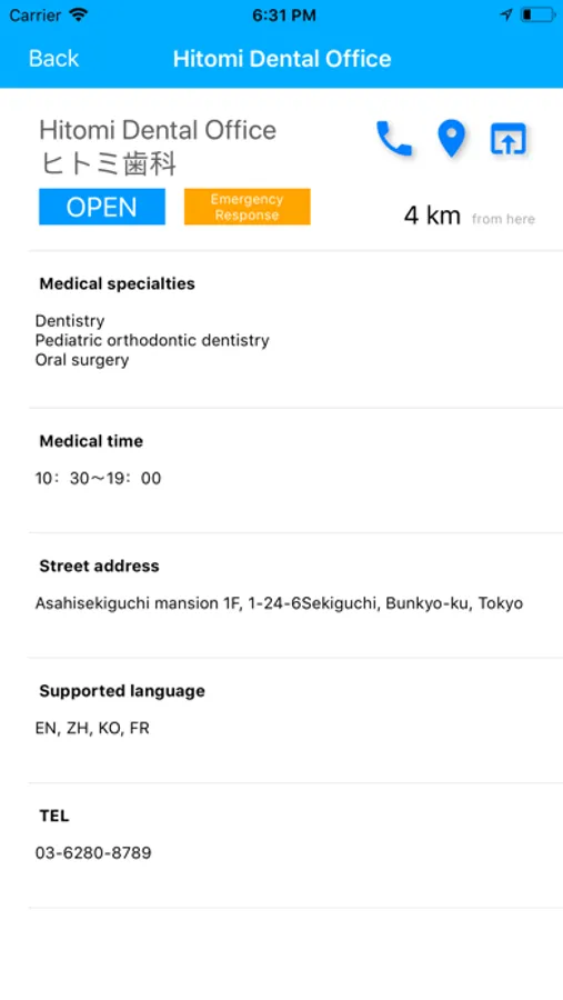 In conjunction with GPS, the nearest medical institution from the current location will be displayed.