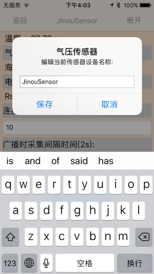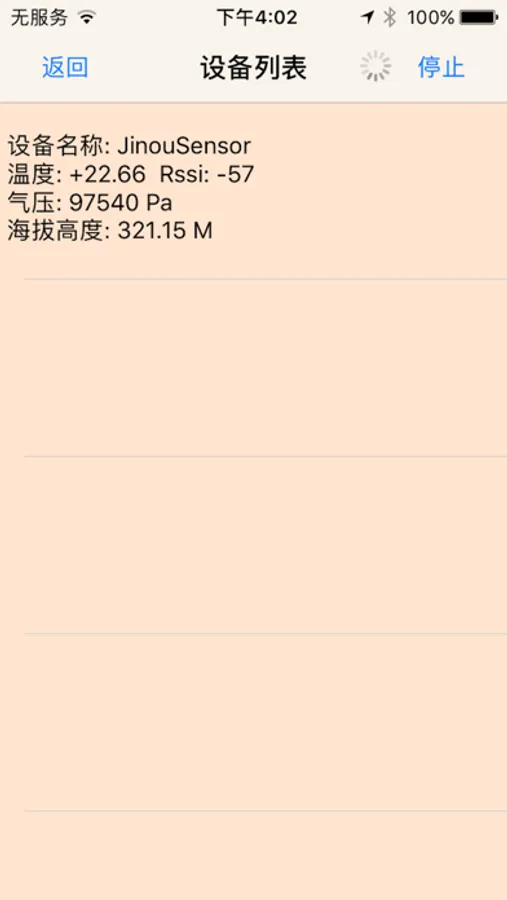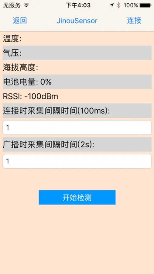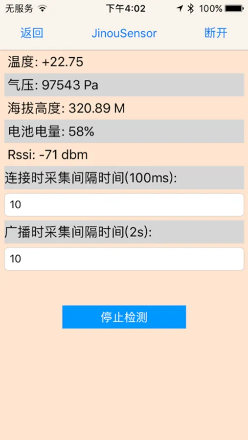 JINOU气压传感器Beacon控制程序,连接Beacon设备检测当前气压,并计算海拔高度。