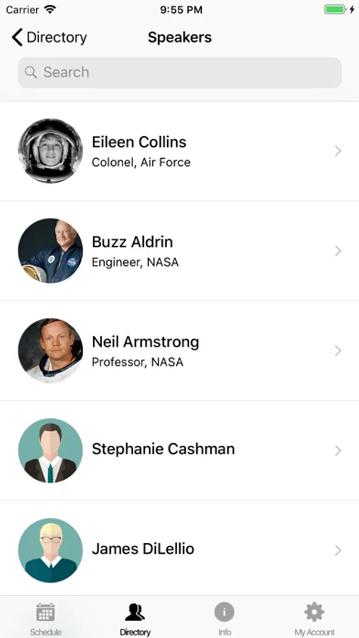 View comprehensive professional profiles of speakers and exhibitors for the event.