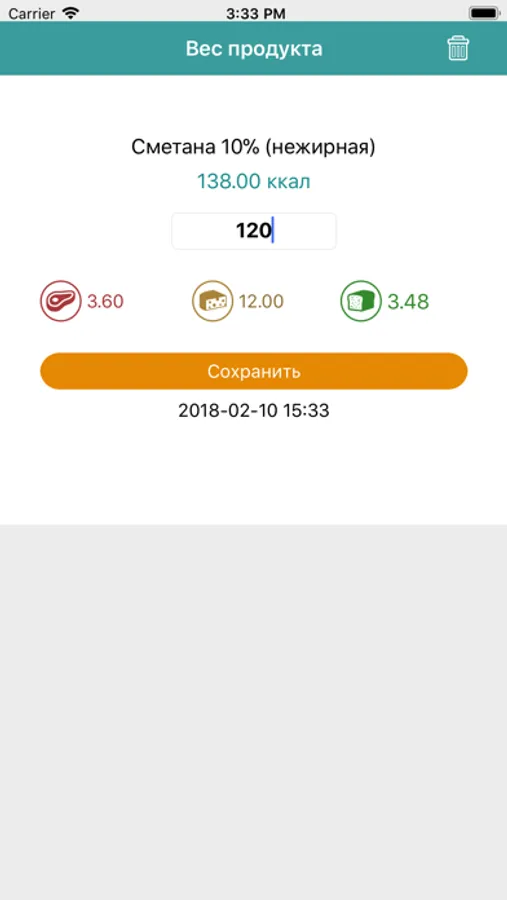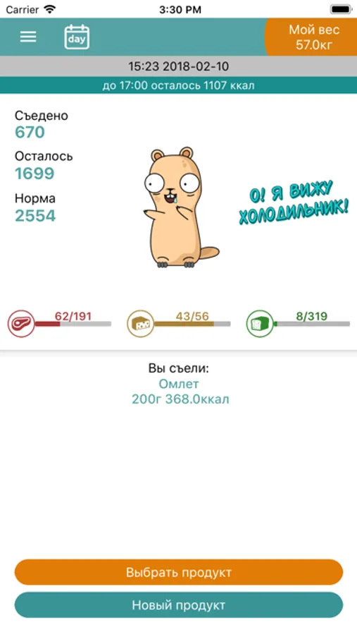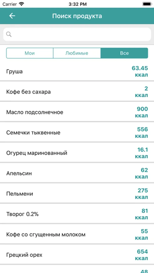 Поиск по любимым продуктам поможет удобно рассчитать количество калорий за день.