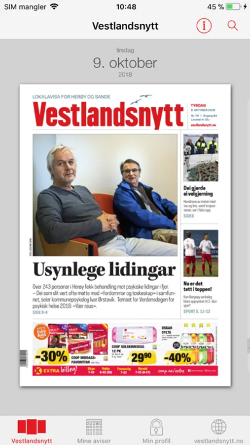 Med Vestlandsnytt sin app kan du lese eAvisa vår. Du kan nytte eit allereie eksisterande abonnement, eller nytte deg av kjøp gjennom applikasjonen. Last ned og kjøp papiravisa i eit format som er tilpassa din iPhone, iPod Touch eller iPad.