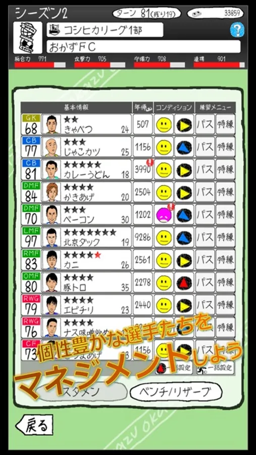 あの人気シリーズがサッカーになった!選手は全てごはんのおかず!ウイクラ×パワサカ的サッカーシミュレーション!