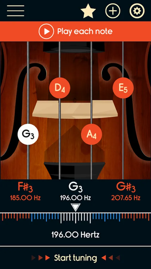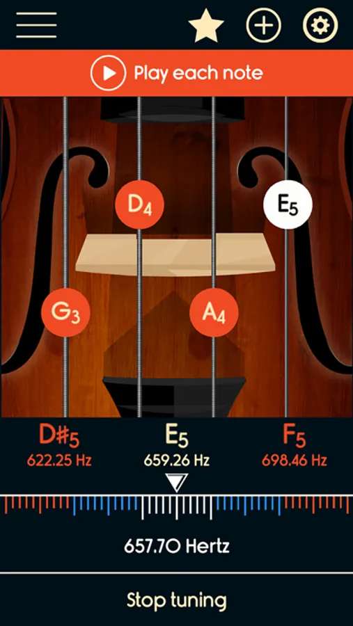 If you need any help with tuning your violin, turn on the auto tuner. The application will recognize the sound played by you and help you tune each string.