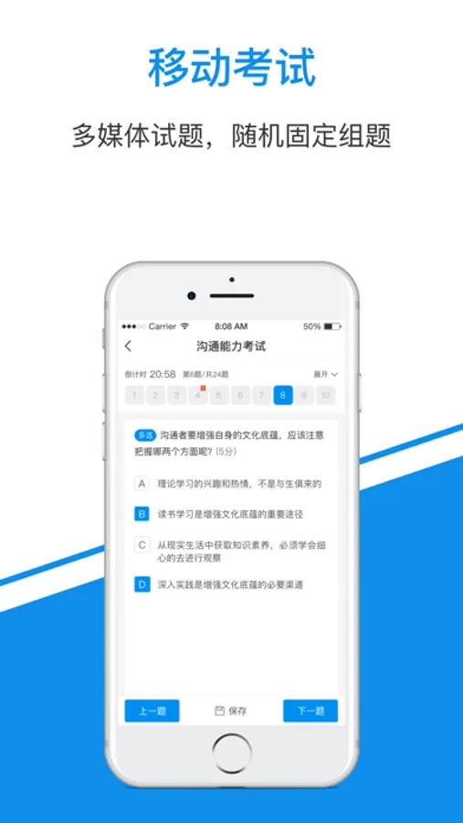 在线考试,同时支持多种题型,并且支持随机组卷和在线批阅,