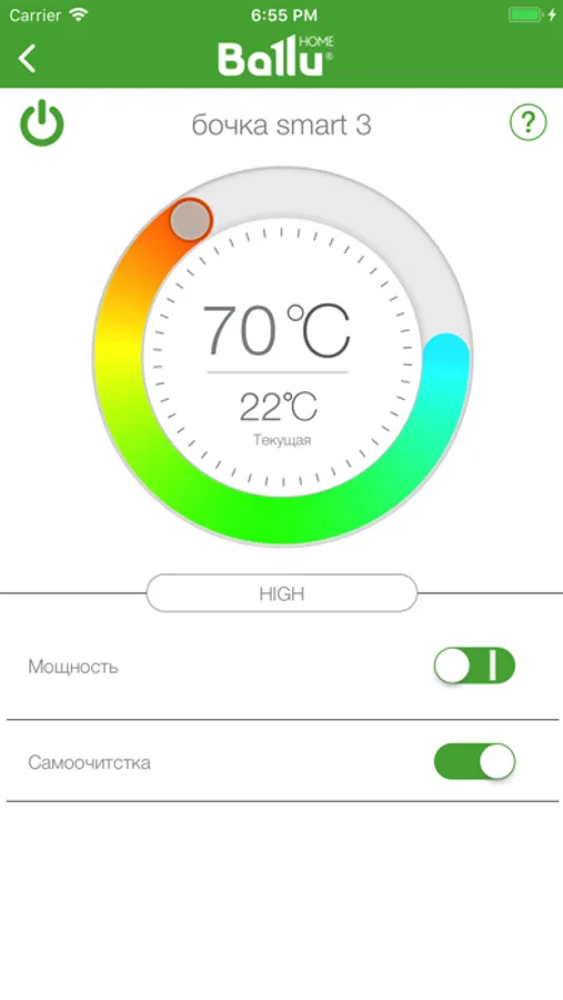 *При наличии установленного приложения BALLU HOME на ваш смартфон и наличия подключения к серверу на вашем мобильном телефоне и оборудовании.