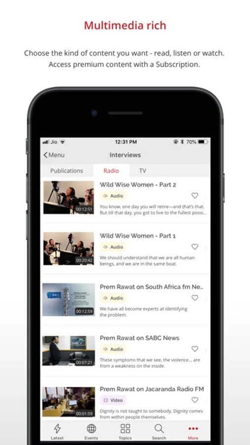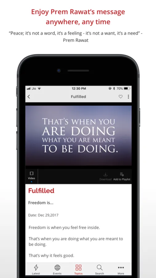 • The TimelessToday app puts Prem’s message of peace in your pocket.