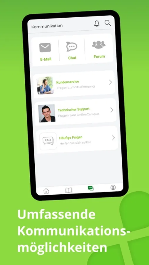 Erhalten Sie alle E-Mails in Echtzeit auf Ihrem Smartphone und beantworten Sie diese direkt in der App. Kontaktieren Sie direkt die Studienbetreuung und den technischen Support über die Campus-Mail.