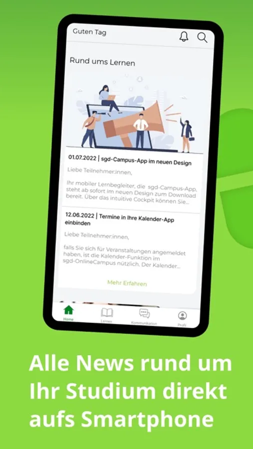 Bleiben Sie immer auf dem aktuellen Stand, z. B. über eingehende sgd-Campus-Mails und News.