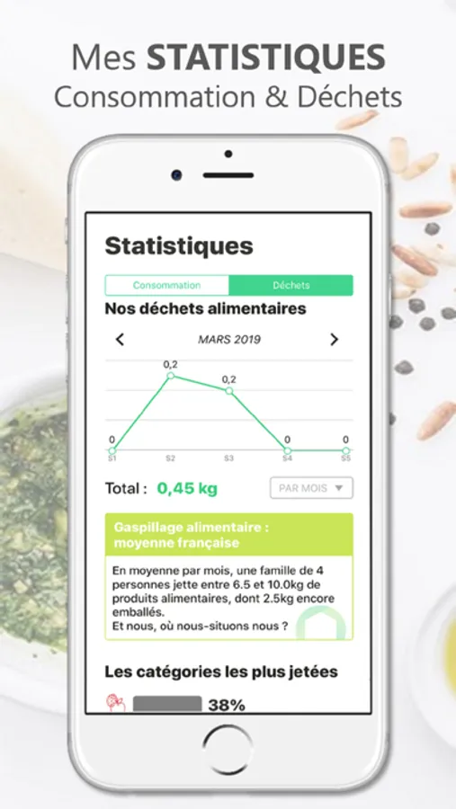 • Suivez vos statistiques de consommation et de réduction de déchets