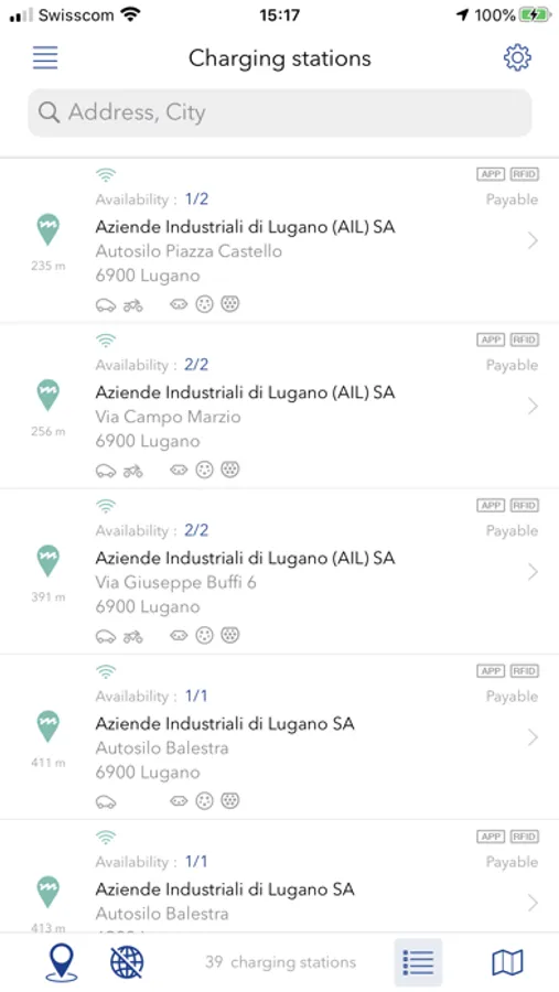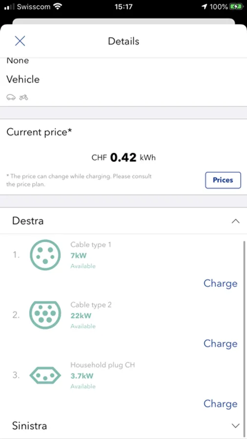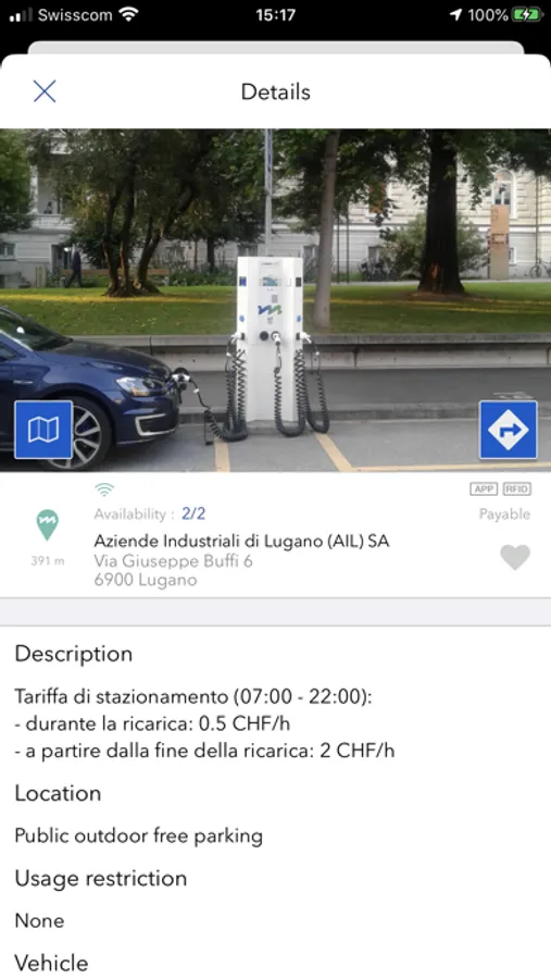 You can instantly view the proposed plug types, the real-time availability and the possible payment systems.
